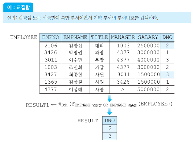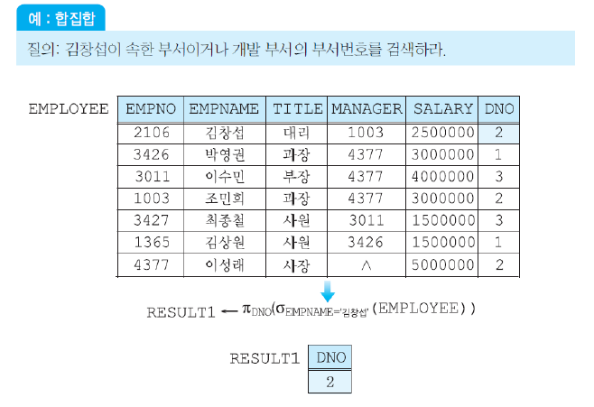 결과 릴레이션은 또 다른 관계 연산자의 입력으로 사용될 수 있다.