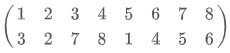 1부터 N까지 정수 N개로 이루어진 순열을 나타내는 방법은 여러 가지가 있다. 예를 들어, 8개의 수로 이루어진 순열(3,2,7,8,1,4,5,6)을 배열을 이용해 표현하면 다음과 같다.