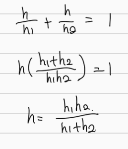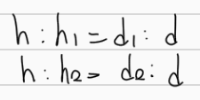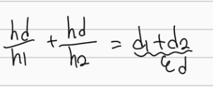 우리가 최종적으로 원하는 변수는 h이기 때문에 h=( ~ ) 와 같은 형태로 변형시켜야 할 것이다. 그러기 위해서는 d1+d2 = d임을 알고 있기 때문에 이를 활용해서 변수를 줄이도록 하자.