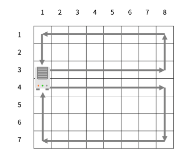 아랫 부분에서는 시계방향으로 회전하면 r의 인덱스가 아랫 공기청정기 인덱스일때, r-1일때, 그리고 c의 인덱스가 0일 때, c-1일 때 영향을 받는다.