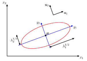 - 즉 가우시안 함수의 원점을 u로 옮기고 고유 벡터를 축으로 회전 변환되는 식을 의미한다