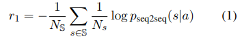 - action a는 문장을 생성하는 것으로, action space는 생성하려는 문장이 가변적이고 의미적으로도 다양하므로 무한하다.