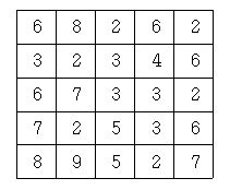 어떤 지역의 높이 정보는 행과 열의 크기가 각각 N인 2차원 배열 형태로 주어지며 배열의 각 원소는 해당 지점의 높이를 표시하는 자연수이다. 예를 들어, 다음은 N=5인 지역의 높이 정보이다.