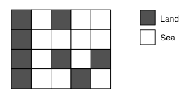 두 정사각형이 같은 섬에 있으려면, 한 정사각형에서 다른 정사각형으로 걸어서 갈 수 있는 경로가 있어야 한다.