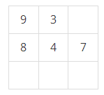다음은 9번 학생이다. 9번 학생이 좋아하는 학생의 번호는 8, 1, 2, 3이고, 이 중에 3은 자리에 앉아있다. 좋아하는 학생이 가장 많이 인접한 칸은 (1, 1), (1, 3)이다. 두 칸 모두 비어있는 인접한 칸이 1개이고, 행의 번호도 1이다. 따라서, 3번 조건에 의해 (1, 1)이 9번 학생의 자리가 된다.