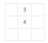 다음 학생은 3번이다. 1번 조건을 만족하는 칸은 (1, 2), (2, 1), (2, 3), (3, 2) 이다. 이 칸은 모두 비어있는 인접한 칸이 2개이다. 따라서, 3번 조건에 의해 (1, 2)가 3번 학생의 자리가 된다.