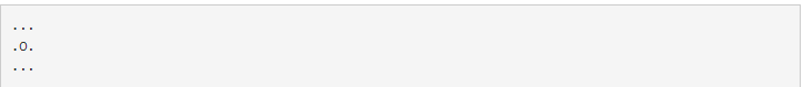 1초가 지난 후에는 아무 일도 벌어지지 않기 때문에, 위와 같다고 볼 수 있다. 1초가 더 흐른 후에 격자판의 상태는 아래와 같아진다.