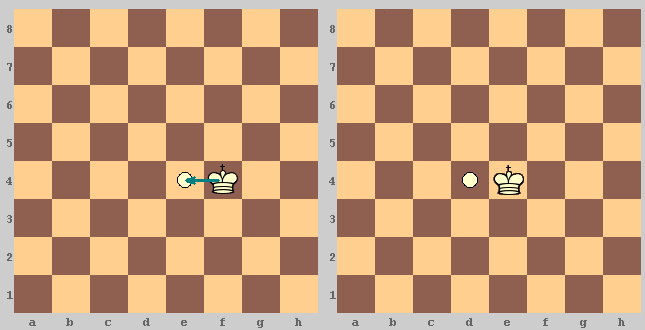 체스판에는 돌이 하나 있는데, 돌과 같은 곳으로 이동할 때는, 돌을 킹이 움직인 방향과 같은 방향으로 한 칸 이동시킨다. 아래 그림을 참고하자.