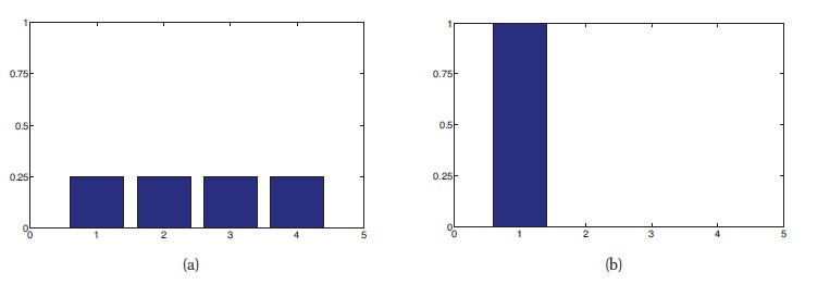 이산 확률 변수 X를 정의해서 이항 사건에 대한 개념을 확장할 수 있으며, X는 유한 집합이나 가산 무한 집합으로부터 어떠한 값도 가질 수 있다. X=x의 확률은 p(X=x)로 나타내고, 간단히 p(x)라고 나타낸다. 여기서 p()는 확률 질량 함수 또는 pmf이다.p(x)도 0과 1 사이의 값을 가지며, 총합은 1이 된다는 조건을 만족한다. 위 그림은 유한한 상태 공간에서 정의된 두 개의 pmf며, 왼쪽은 균등 분포를 가지고 있으며, 오른쪽은 퇴화 분포에 해당하며, X가 항상 1과 같다는 것을 표현한다.