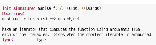 Python에서 제공하는 map의 설명은 다음과 같다.