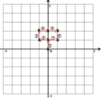 예를 들어, "ULURRDLLU"로 명령했다면 1번 명령어부터 7번 명령어 까지 다음과 같이 움직입니다.