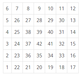 이 공연장에 입장하기 위하여 많은 사람이 대기줄에 서있다. 기다리고 있는 사람들은 제일 앞에서부터 1, 2, 3, 4, . 순으로 대기번호표를 받았다. 우리는 대기번호를 가진 사람들에 대하여 (1,1)위치 좌석부터 시작하여 시계방향으로 돌아가면서 비어있는 좌석에 관객을 순서대로 배정한다. 이것을 좀 더 구체적으로 설명하면 다음과 같다.