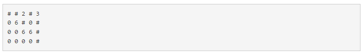 지도에서 0은 빈 칸, 6은 벽, 1~5는 CCTV의 번호이다. 위의 예시에서 1번의 방향에 따라 감시할 수 있는 영역을 '#'로 나타내면 아래와 같다.