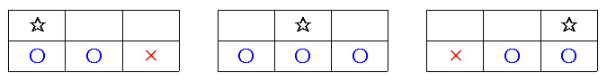 별표가 현재 위치이고, 그 아랫 줄의 파란 동그라미는 원룡이가 다음 줄로 내려갈 수 있는 위치이며, 빨간 가위표는 원룡이가 내려갈 수 없는 위치가 된다. 숫자표가 주어져 있을 때, 얻을 수 있는 최대 점수, 최소 점수를 구하는 프로그램을 작성하시오. 점수는 원룡이가 위치한 곳의 수의 합이다.