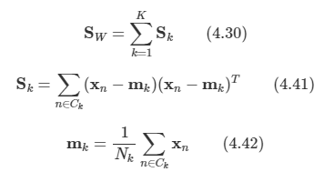 최종적으로 다음과 같으면 피셔 판별식과 동일하다.