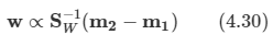 - 이 식에 라그랑주 승수법을 적용해서 최소값을 구하면 w는 (m2-m1)에 비례한다.