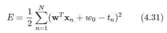 E는 w0와 w에 대해 각각 미분하고 그 값을 0으로 설정하면 다음의 식을 얻게 된다.