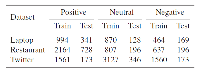 - SemEval 2014 Task의 Laptop과 Restaurant 리뷰 데이터셋을 사용한다.