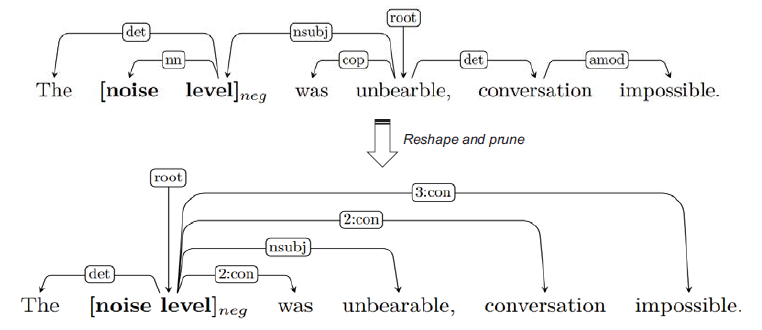 - 질문의 target aspect로 root가 되게 dependency tree를 reshape한다.