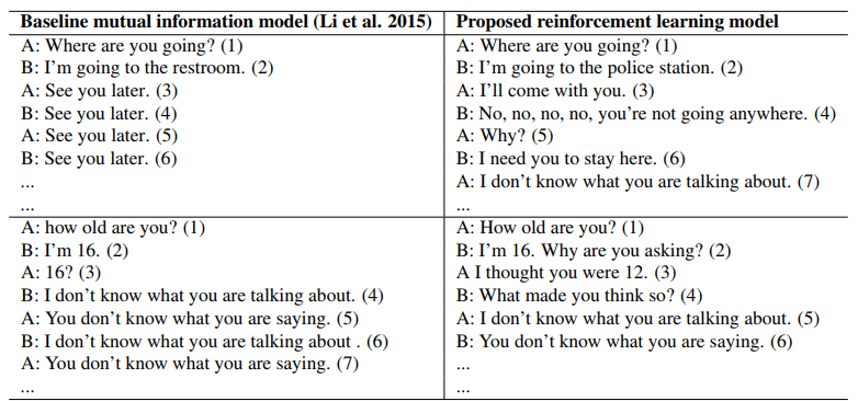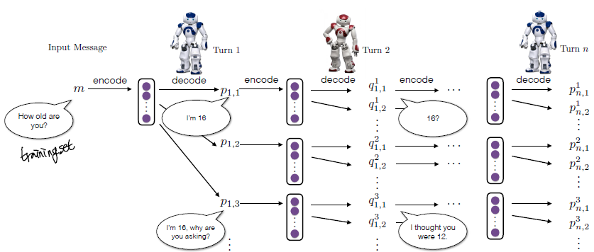 - Dialogue Generation을 RNN으로 하는 것이 좋은 가능성을 보인기는 했지만, 근시안적으로 바라보며 미래에 다가올 영향을 생각하지 않고 대화를 생성하는 경향이 있다.