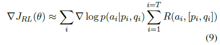 - action a는 문장을 생성하는 것으로, action space는 생성하려는 문장이 가변적이고 의미적으로도 다양하므로 무한하다.