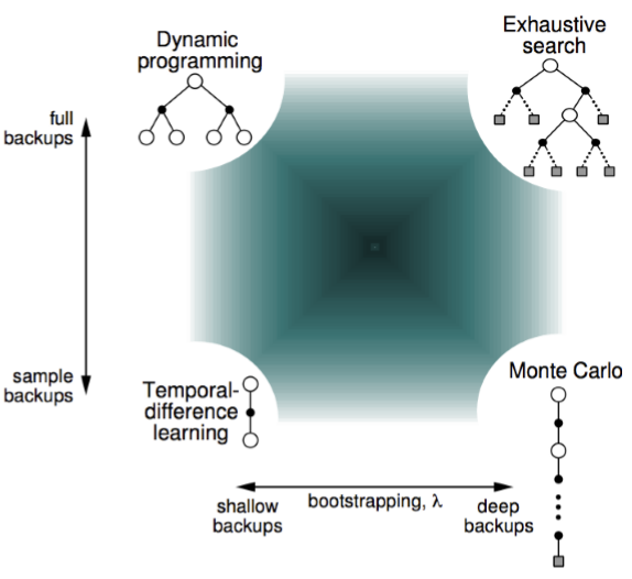 다음은 backup과 bootstrapping에 따른 RL의 분류이다.