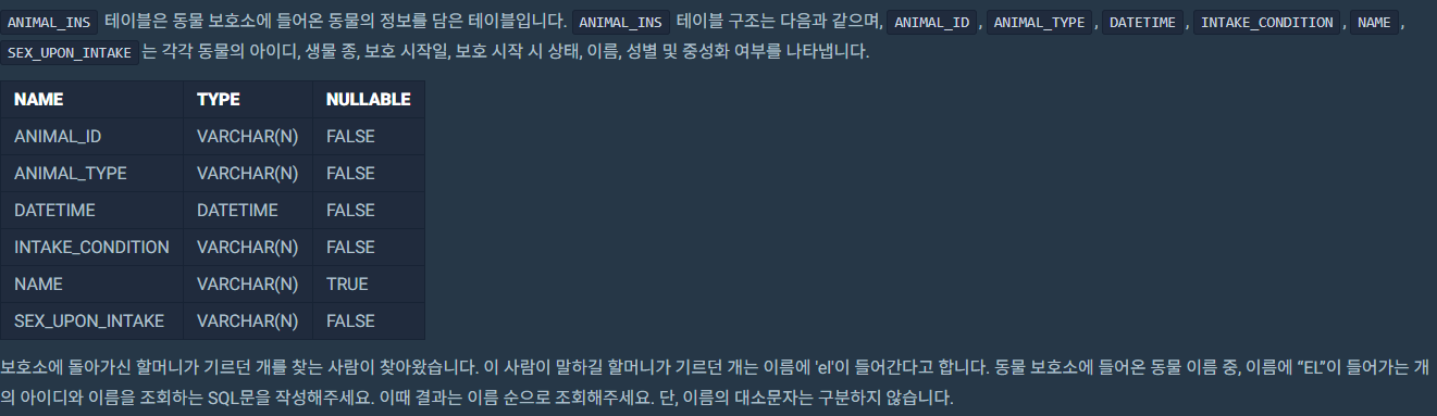 [Programmers]Lv 2. 이름에 el이 들어가는 동물 찾기 (0) | 2019.10.09 |