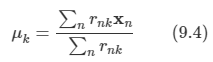 식 9.14를 가우시안 성분의 평균 μk에 대해 미분한 값을 0으로 설정하면 다음을 얻게 된다.