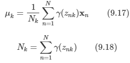 - 다른점은 각각의 데이터 포인트들이 해당 사후 확률로 가중되며, 해당 성분에 연관된 유효 데이터 포인트의 숫자가 분모에 추가된다는 점이다.