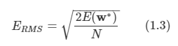 일반화의 성능을 측정할 수 있는 수치가 있으면 편리하다. 따라서 RMS 에러(Root Mean Square error)를 사용한다.